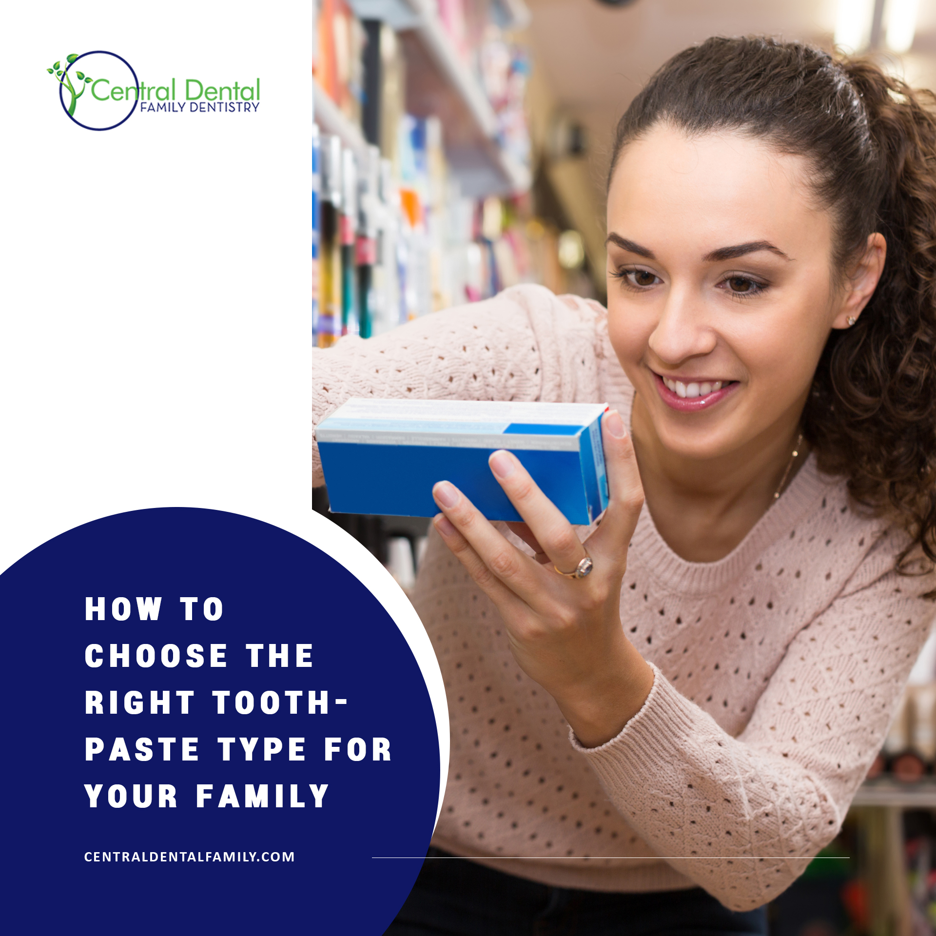 Brushing can only be as effective as the right choice of toothpaste for our specific needs. So for the sake of your and your family’s oral health, don’t choose your toothpaste based solely on packaging and price. Contact us at Central Dental Family for more advice!